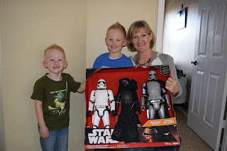 G-ma came to visit! Not only did she bring the next size clothes for the boys (and take their small ones to Kristen's boys), she brought them these big Star Wars figures: