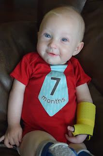 They are only to be worn together while he's sleeping (to gradually stretch his range of motion from 60* to 90*) and the wrist one alone is just to assist him during his weight bearing exercises, but I decided to show them off because people were asking to see what they look like. It'll be much easier to practice tripod sitting and rolling over now that his left hand can help a bit!